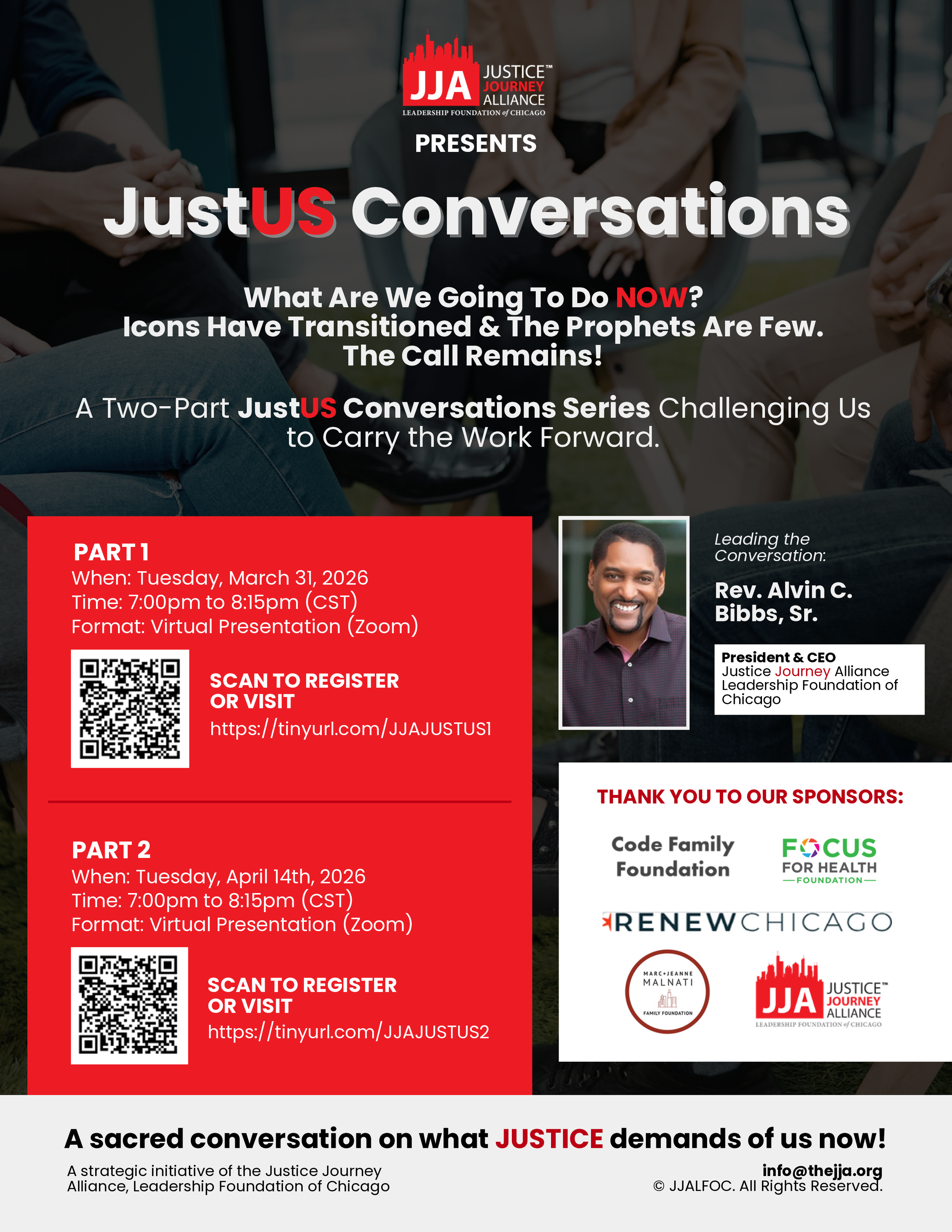 Leading the conversation will be Rev. Alvin C. Bibbs, Sr., President | CEO of the Justice Journey Alliance, LFOC. This two-part virtual experience will challenge and equip us to carry the work forward—together.